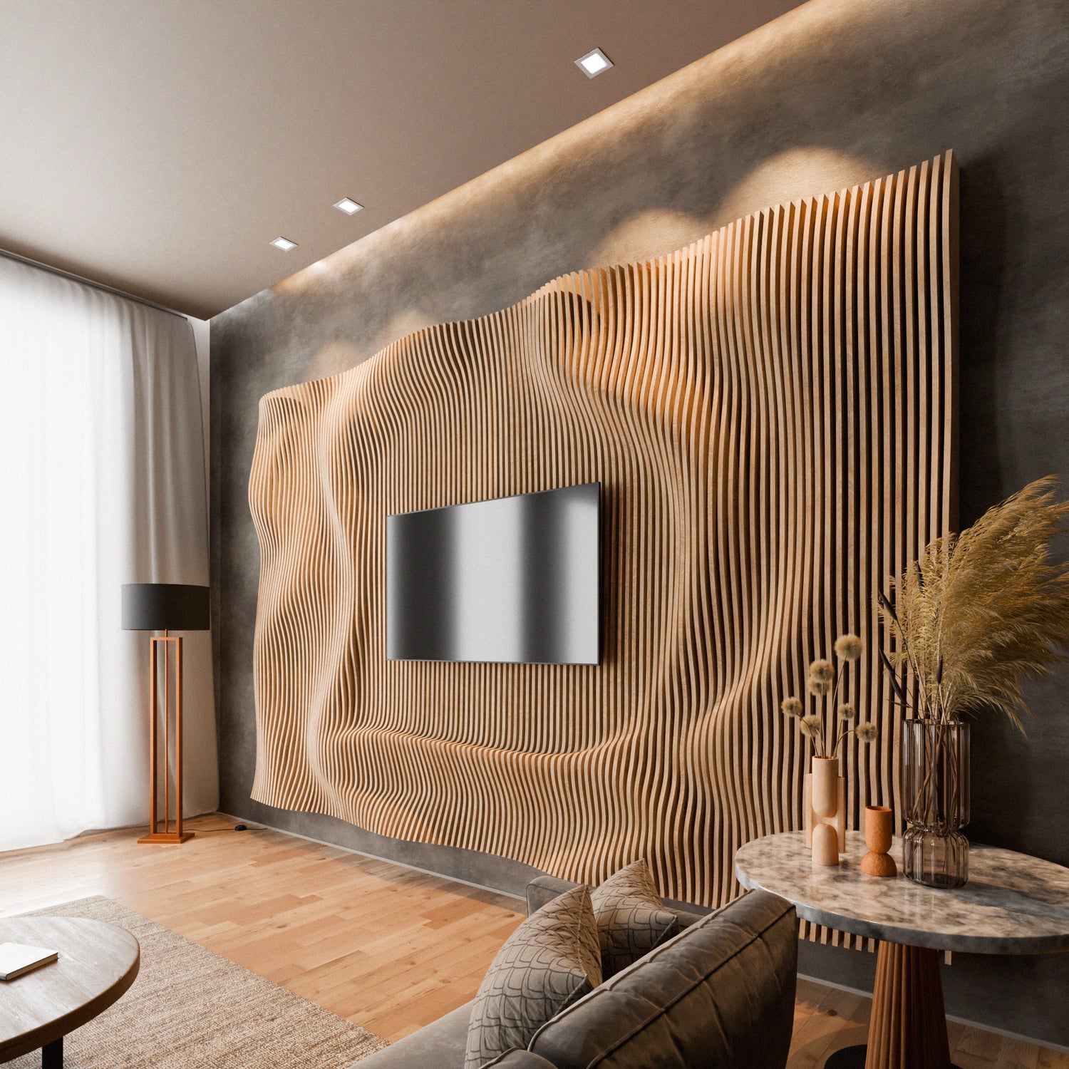 Transform your entertainment area with our stunning parametric TV wall art. Designed to enhance the aesthetics of your living room, these wooden TV wall art panels create a captivating backdrop that turns your television into a centerpiece. Our 3D wooden TV wall art seamlessly blends functionality with modern design, providing a sophisticated look for your entertainment center.